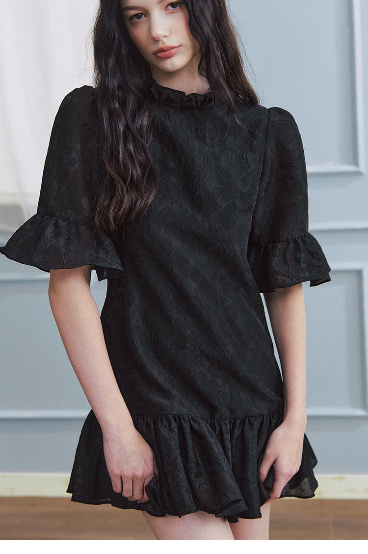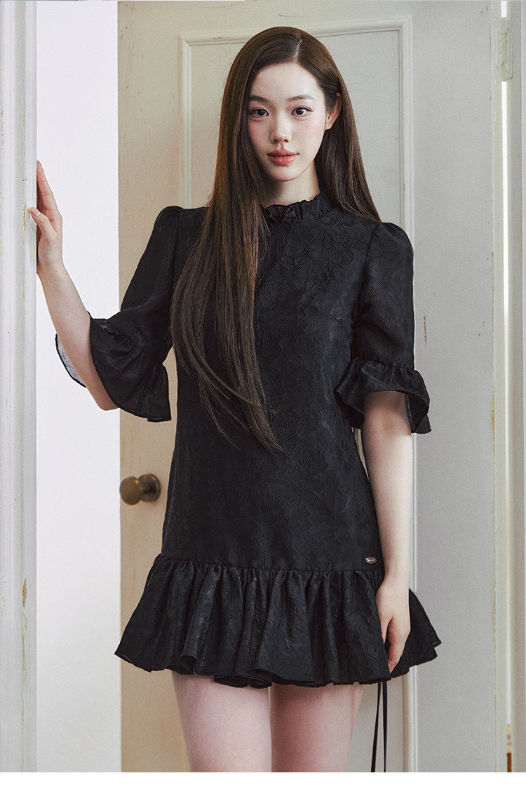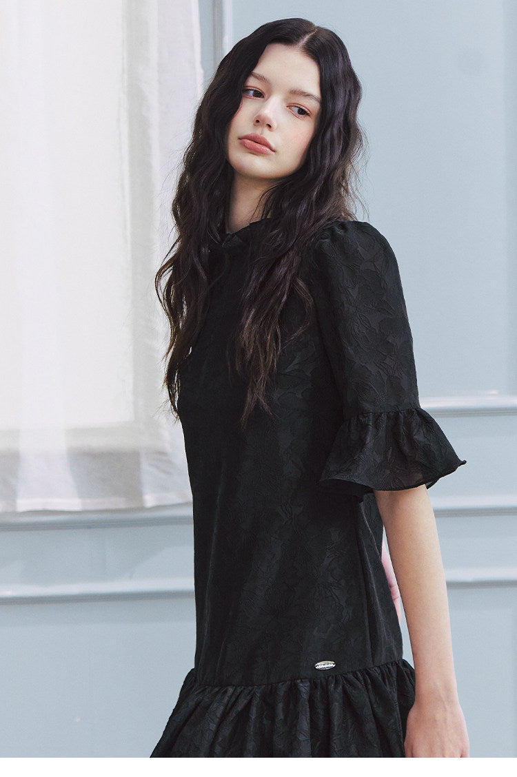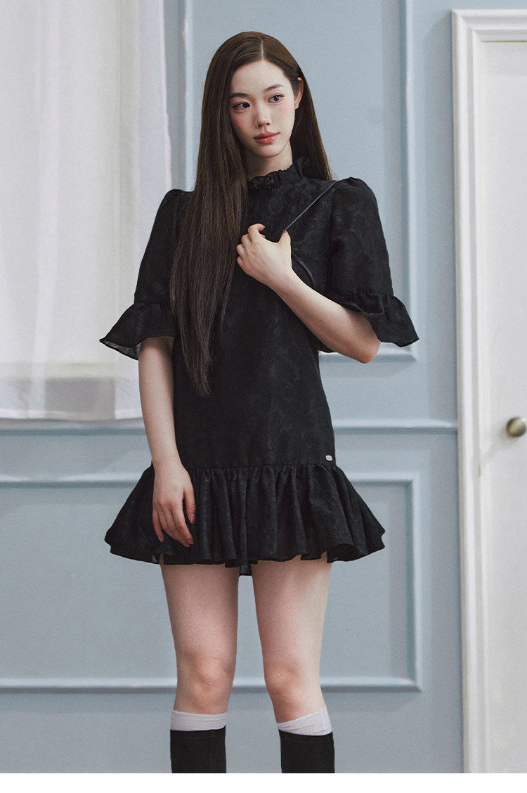 LLDC 'BUCOLIC BOHEMIA' Ruffled Jacquard Textured Puffy Dress [Black]