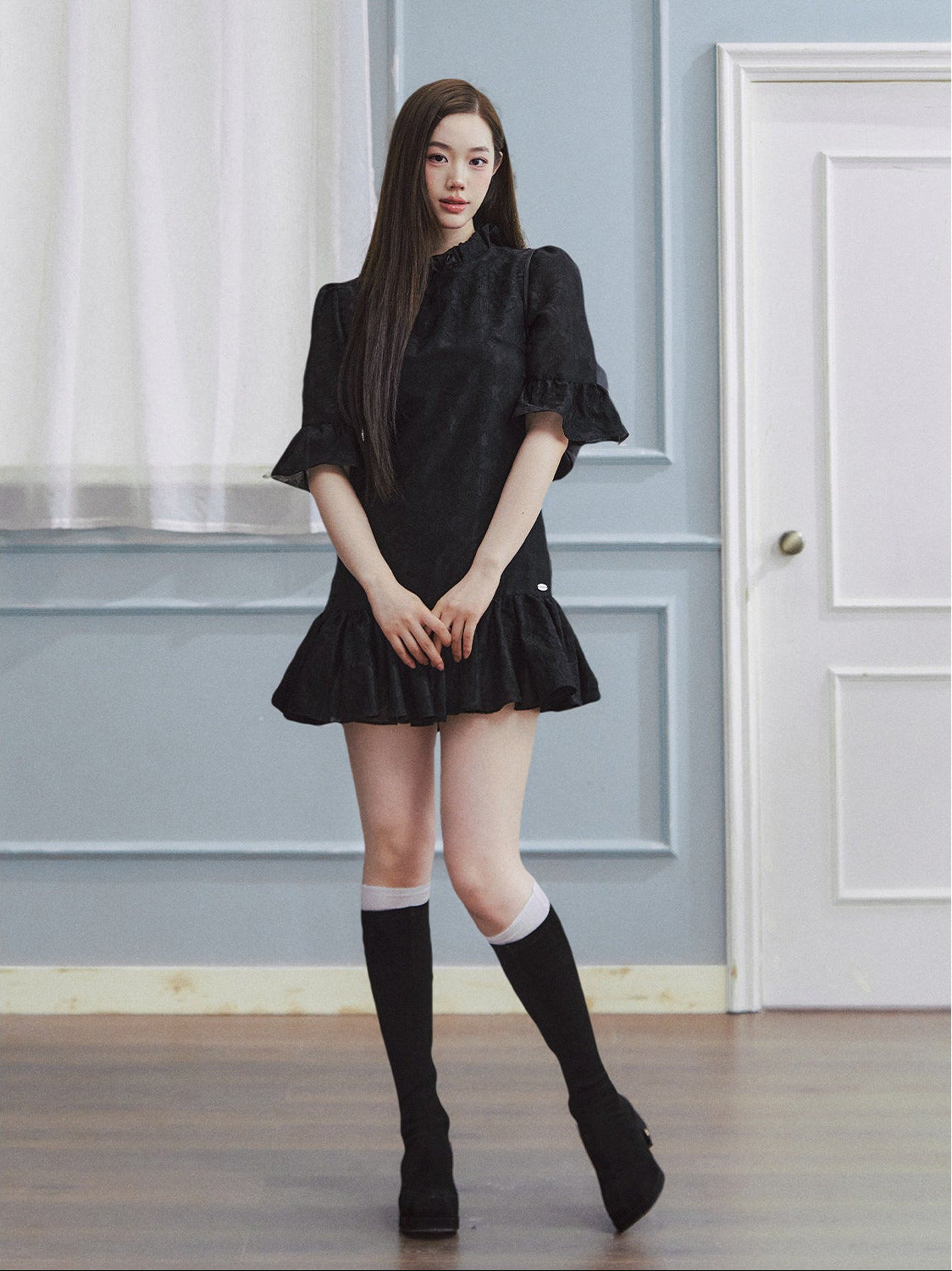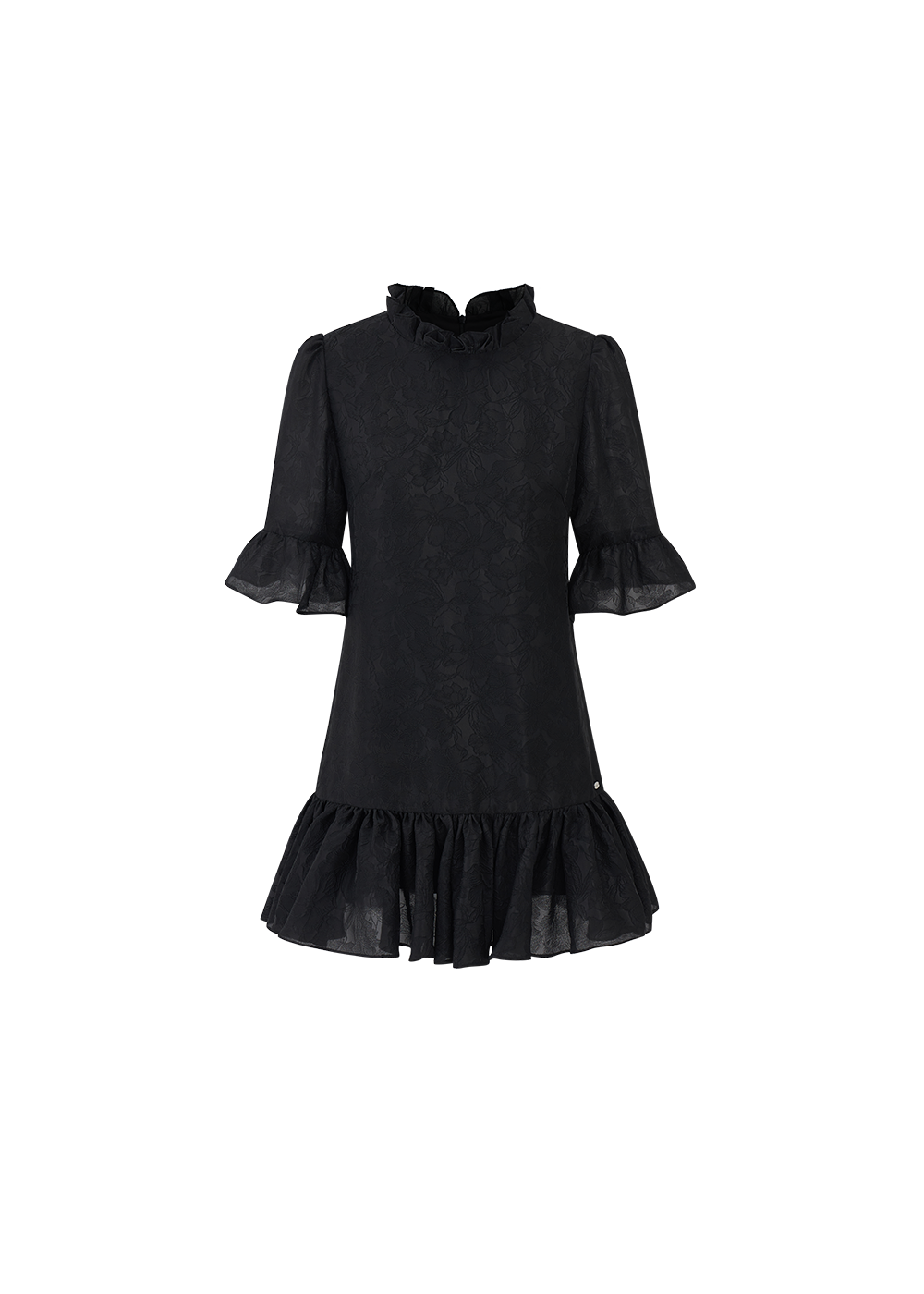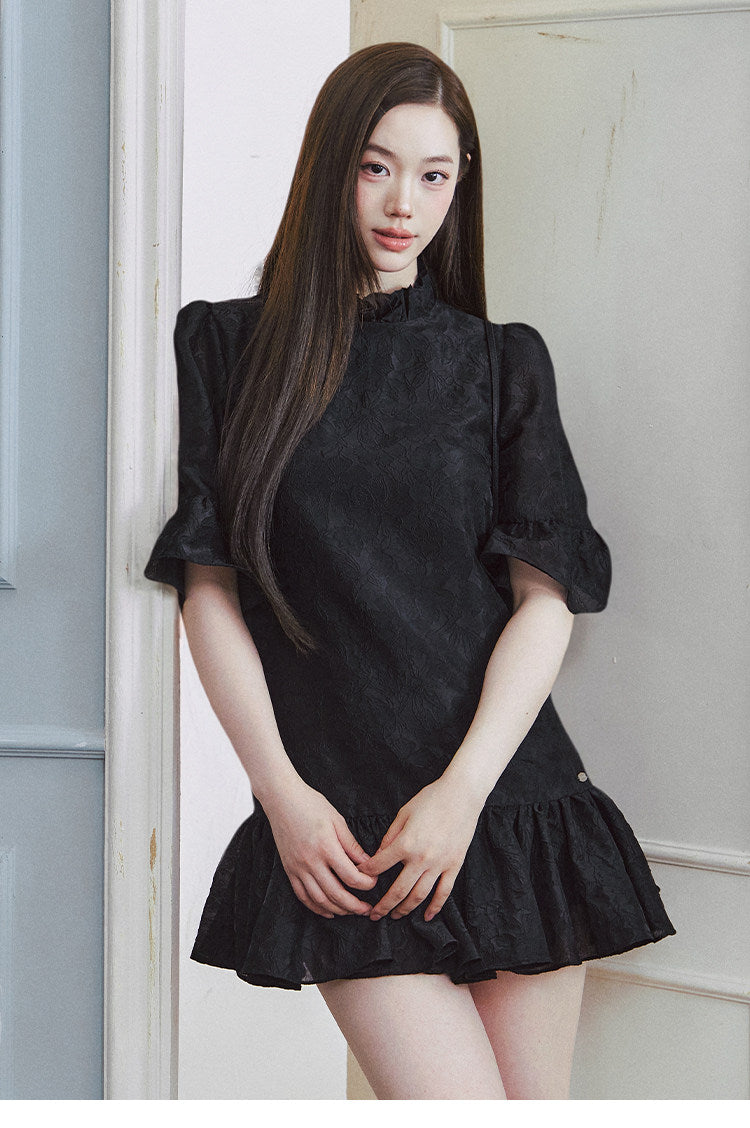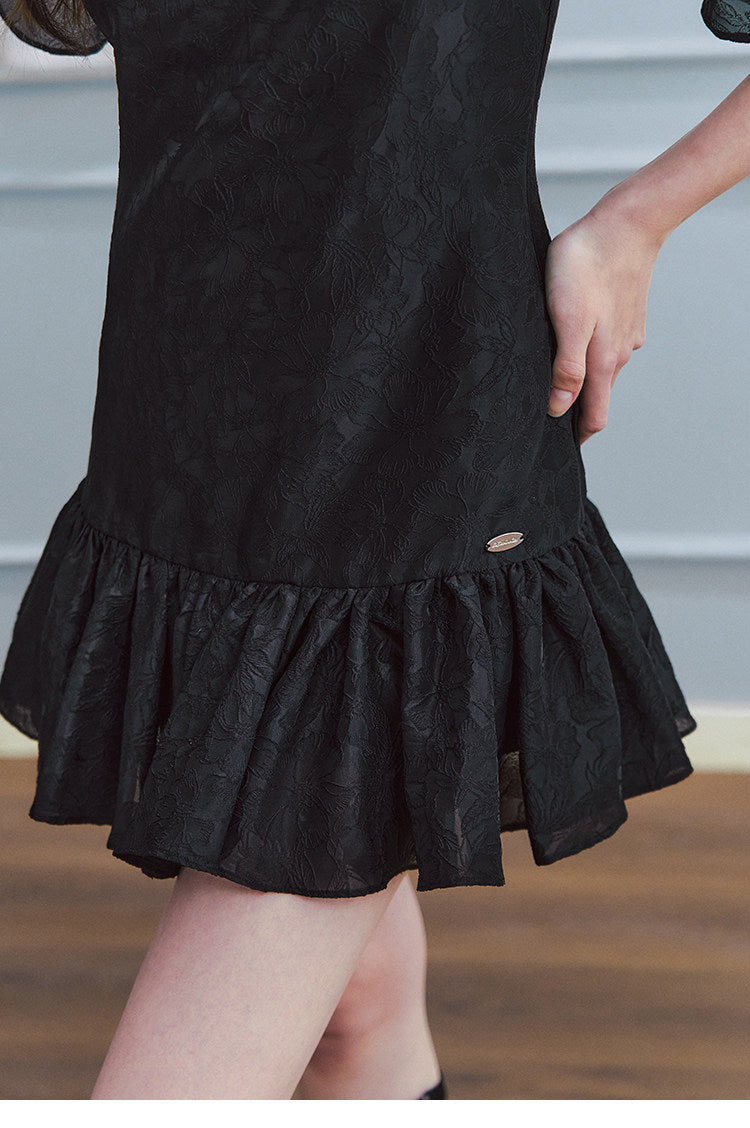 LLDC 'BUCOLIC BOHEMIA' Ruffled Jacquard Textured Puffy Dress [Black]