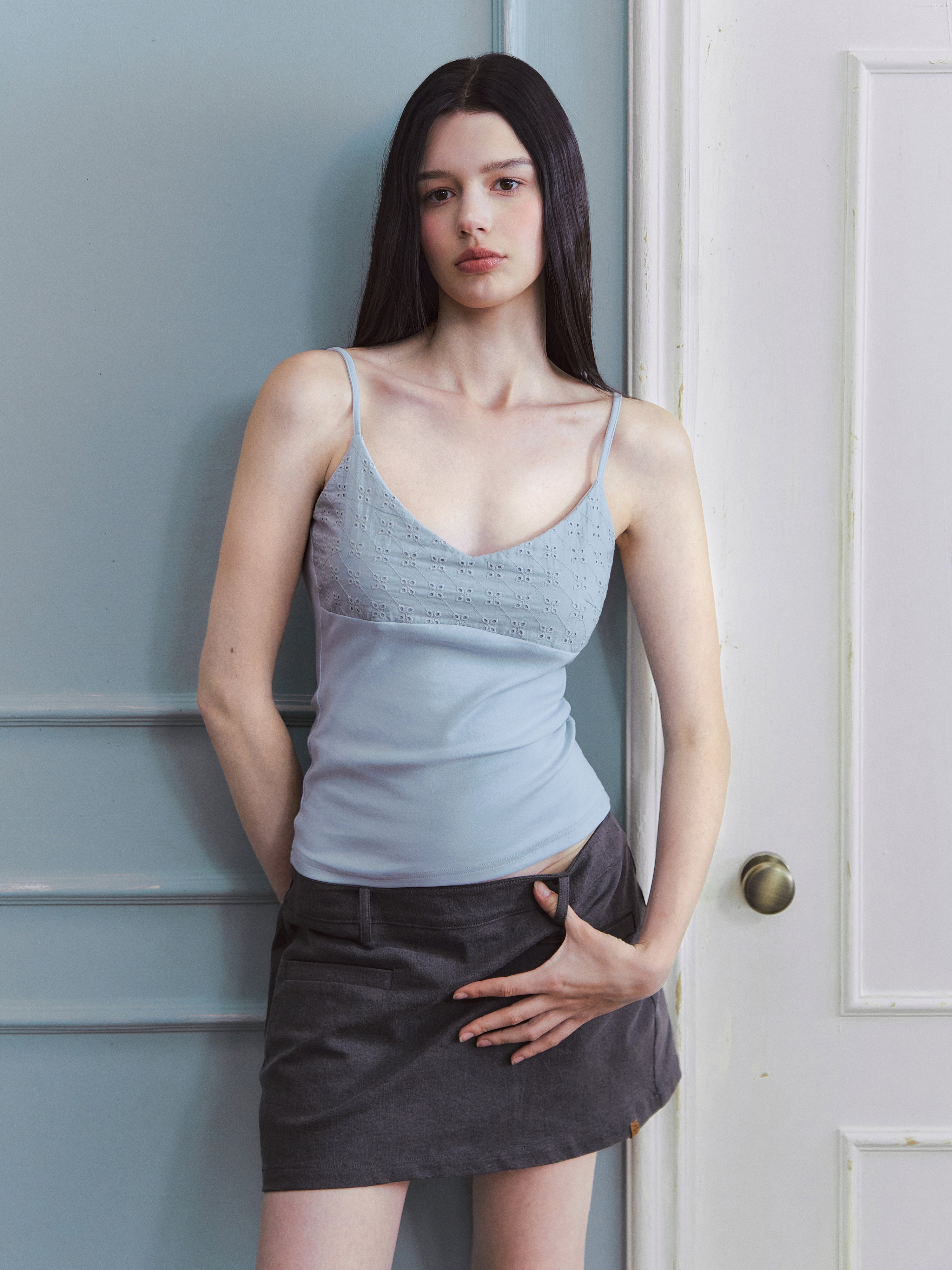 LLDC 'BUCOLIC BOHEMIA' Embroidered Hollow-Out Detachable Padded Camisole [Blue]