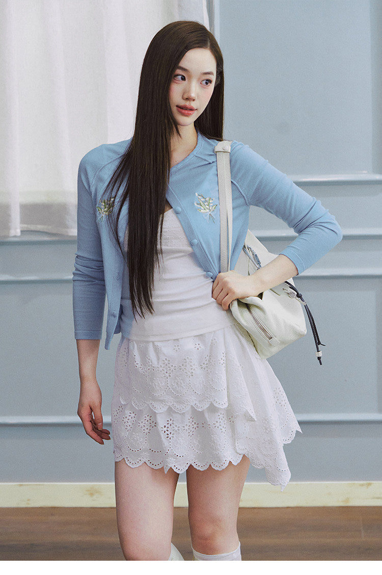 LLDC 'BUCOLIC BOHEMIA' Embroidered Hollow-Out Asymmetrical A-Line Skirt
